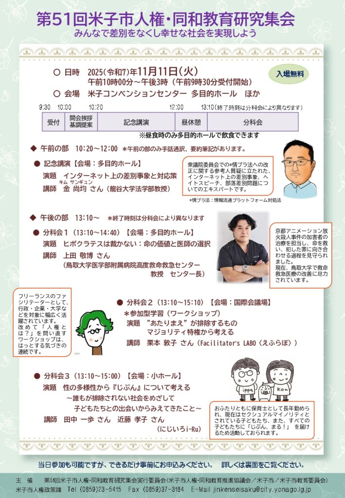 米子市人権・同和教育研究集会に登壇いたしました 2025年11月18日 米子市で開催されました「第51回米子市人権・同和教育研究集会」に弊社プロフェッショナルの上田敬博が講師として登壇いたしました。 第51回米子市人権・同和教育研究集会開催場所:米子市コンベンションセンター 開催日:2025年11月11日 演題:ヒポクラテスは裁かない~命の価値と医師の選択~ 詳細はこちら